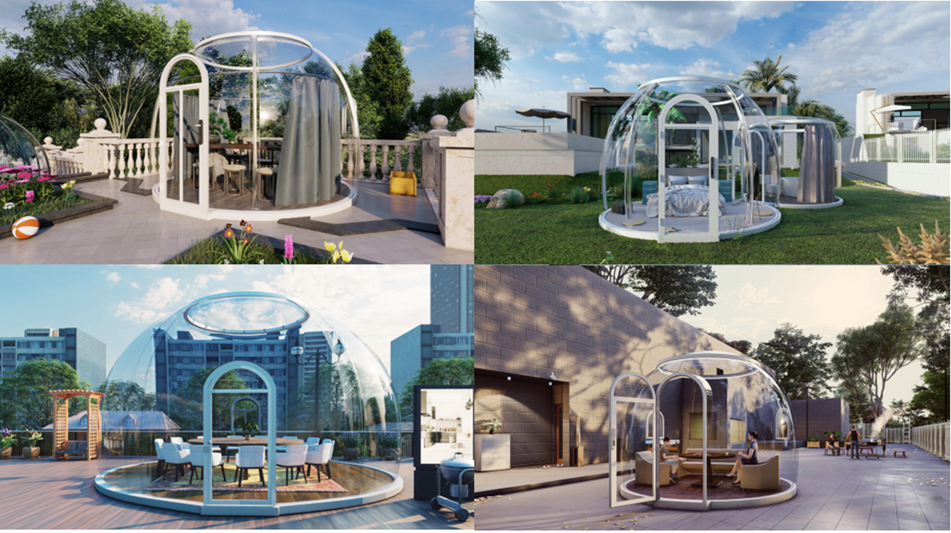 1. Structure:Dome roof+Polycarbonate Modular+Aluminum Door Frame and Base