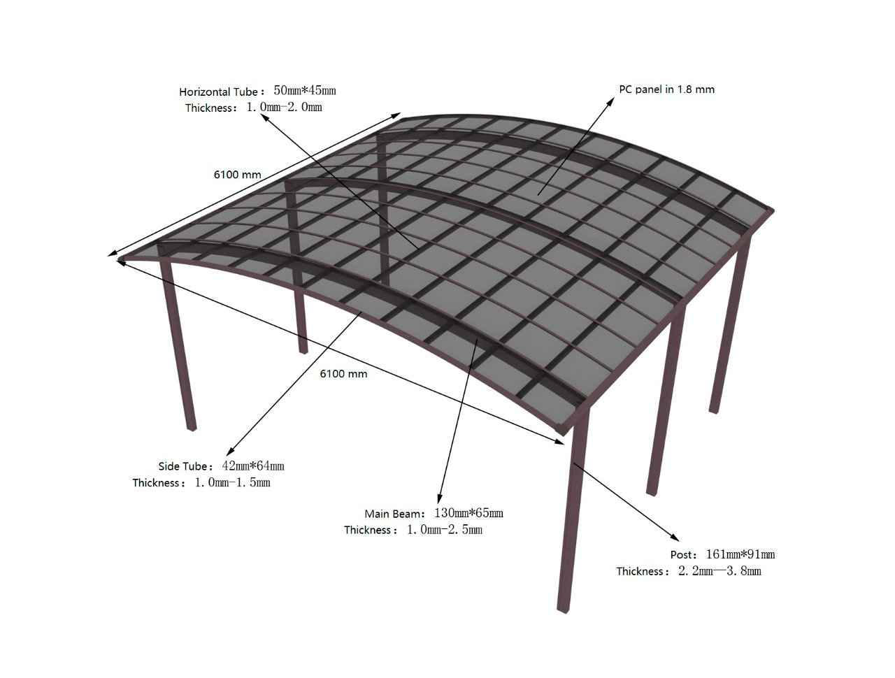 Litesort Apollo carport is assembled with 65% aluminum alloy frame, 35% polycarbonate solid 2mm thick sheet, and related stainless steel hardware accessories, which offer a modern, light weight, strong and durable structure shade to protect your car(s) from sun, rain, snow, hail, etc.,and also is perfect patio cover to enhance your outdoor life.