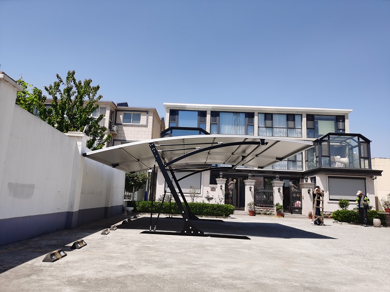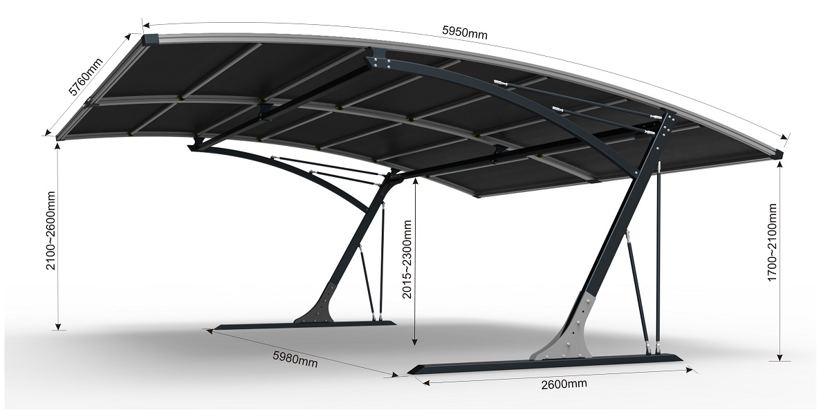 Litesort Ares carport is assembled with 30% galvanized steel frame, 30% Aluminum profile and 30% PVDF film and related engineering plastic and stainless-steel hardware accessories, which offer a modern, light weight, strong and durable structure shade to protect your car(s) from sun, rain, snow, hail, etc.