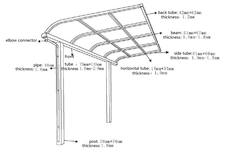 Litesort Athena Aluminum Patio Cover is assembled with 65% aluminum alloy frame, 35% polycarbonate solid 2mm thick sheet, and related stainless steel hardware accessories, which offer a modern, light weight, strong and durable structure shade to protect your car(s) from sun, rain, snow, hail, etc.,and also is perfect patio cover to enhance your outdoor life.